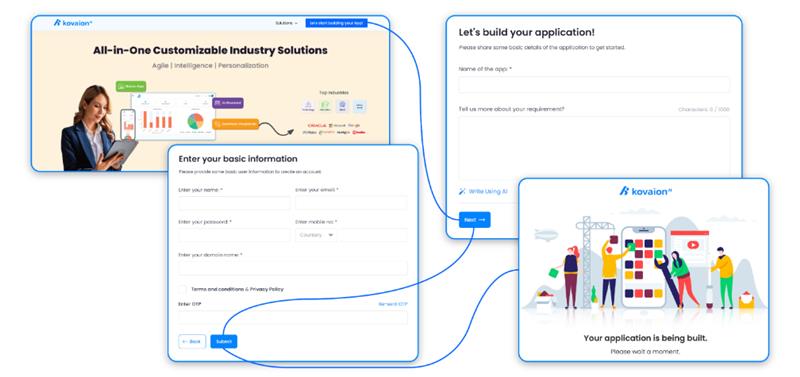 KovaionAI takes a leap forward with its AI-powered SignUp feature, simplifying the process of building your ideal application. From entering your basic details to outlining your requirements, the platform’s intuitive interface guides you every step of the way.